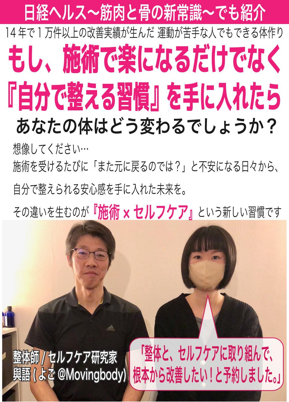 その効果をあなた自身がセルフケアで持続させることができるのです。